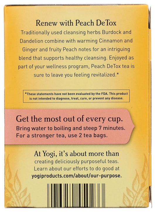 Yogi Peach DeTox Tea Bags - 16 Count Box - Herbal Cleanse and Detox Tea