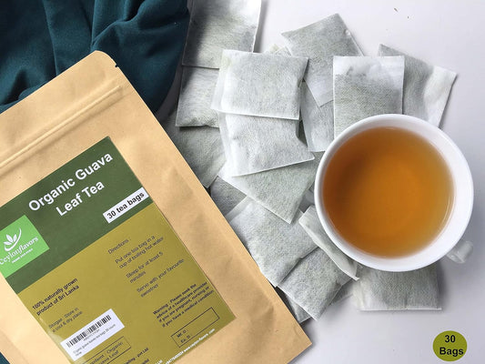 Organic Guava Leaves Tea Bags - 30 Count of Naturally Grown Ceylon Flavors for Fresh and Pure Flavor
