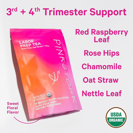 Organic Labor and Delivery Tea with Raspberry, Chamomile, Rosehip for Pregnancy - Pink Stork Labor Prep Tea