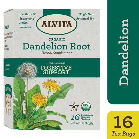 Organic Dandelion Root Tea Bags for Detox & Immunity Boost - 16 Ct Liver & Digestive Support Herbal Tea - Alvita Roasted Dandelion Tea Substitute