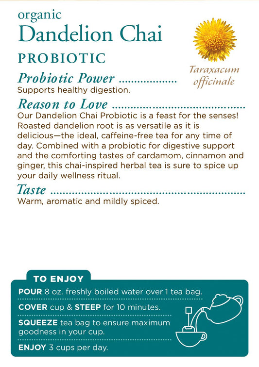 Organic Dandelion Chai Probiotic Tea by Traditional Medicinals - 96 Tea Bags (6 Pack) for Healthy Digestion Support