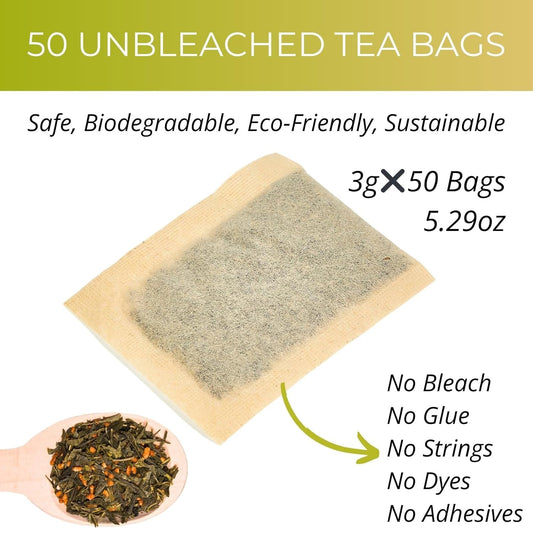 Organic Genmaicha Green Tea Bags - 50 Count, 5.29oz, Unbleached, ECO-Conscious Japanese Roasted Green Tea with Brown Rice - VitalForest