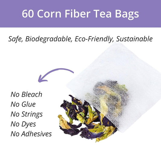 VitalForest Butterfly Blue Pea Flower Tea Bags - 60 Count, Premium Caffeine-Free Herbal Tea for Cooking, Iced Tea, Cocktails, Non-GMO