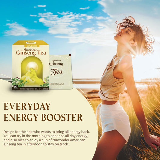 American Ginseng Tea for Energy & Focus - Respiratory Support, Vegan & Gluten-Free, No Artificial Additives, Caffeine & Sugar-Free - 10 Bags