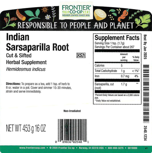 Organic Indian Sarsaparilla Root - Bulk Cut & Sifted - 1 lb - Frontier Co-op