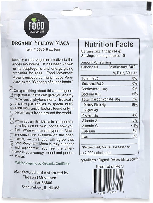 Organic Yellow Maca Root Powder - 8 oz by The Food Movement Co. | Premium Quality Superfood Supplement for Health and Wellness