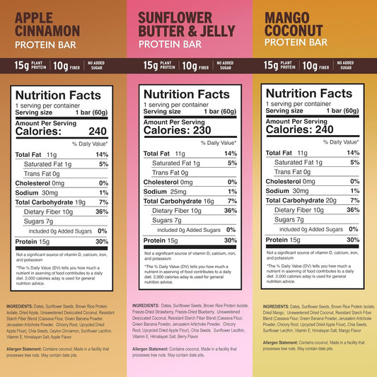 AMRITA Vegan Protein Bars Variety Pack - 6 Flavors, High Fiber, No Sugar, Plant Based Protein - Peanut/Dairy, Soy & Gluten Free - Meal Replacement & Breakfast Bars - 15g Protein Bars