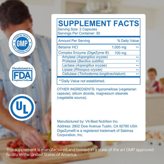 60 Capsules of HUJ Digestive Enzymes Supplement for Optimal Digestive Health
