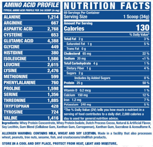 Chocolate Brownie Whey Protein Powder Blend for Lean Muscle Support - Ronnie Coleman Signature Series, Low Sugar Supplement for Men & Women, 5 lbs