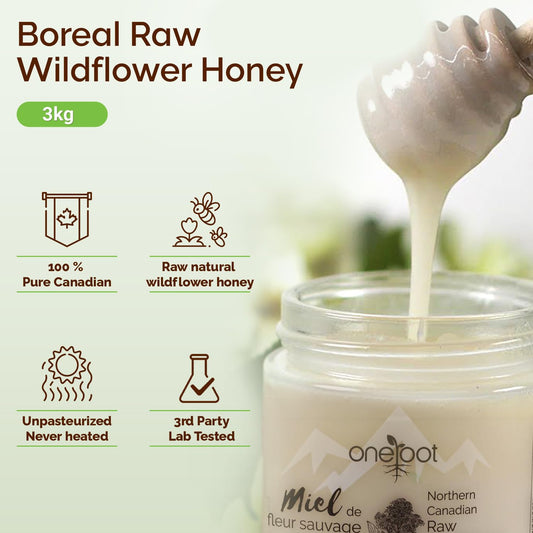 Raw Canadian Wildflower Honey - Unfiltered & Unheated Creamed Honey, 100% Pure & Nutrient-Rich with Enzymes, Thick Natural Sweetener - 6.6 lb