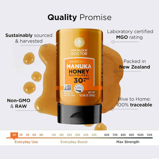 Raw Manuka Honey from New Zealand - MGO 50+ Multifloral Squeezy Honey - 12oz