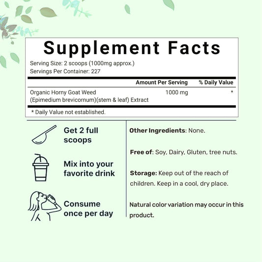 Organic Horny Goat Weed Powder 8 oz - Pure Epimedium Powder for Energy & Immune Support - Beleon Goods For Life
