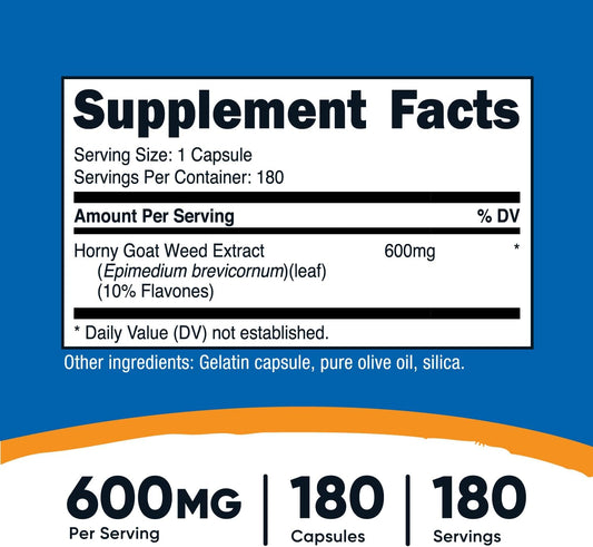 Nutricost Horny Goat Weed Extract Capsules - 600mg, 180 Servings - Epimedium Supplement