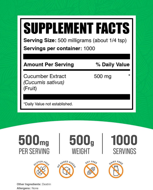 BulkSupplements.com Cucumber Extract Powder - Hydration Supplement, Vegan & Gluten Free, 500mg per Serving, 500g (1.1 lbs)
