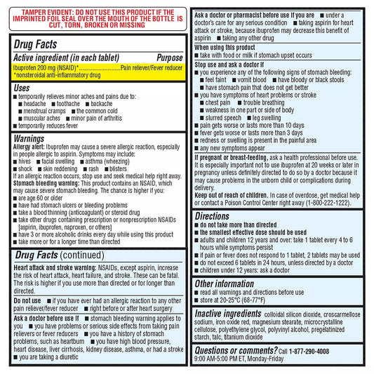 Member's Mark 200 mg Ibuprofen Tablets (600 Count, 2 Bottles) - Pain Relief & Fever Reducer