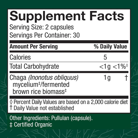 Chaga Mushroom Capsules for Immune System Support - Antioxidant Supplement - Dietary Mushroom Supplement - 60 Capsules