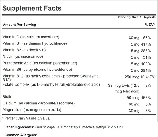Absorption-Protected Methylcobalamin B12 Capsules for Energy and Stress Support - 180 Count