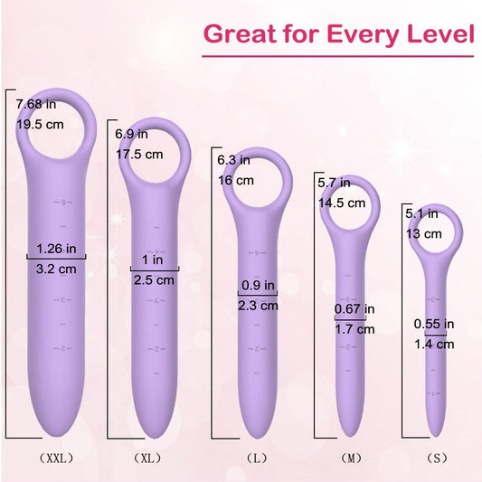 5-Pack Silicone Dilators for Pelvic Floor Strengthening with Pelvic Wand Massager and Storage Bag - Purple Color