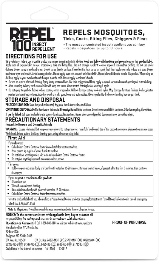 6-Pack Repel 100 Insect Repellent with DEET for 10-Hour Protection - 1-Ounce Each