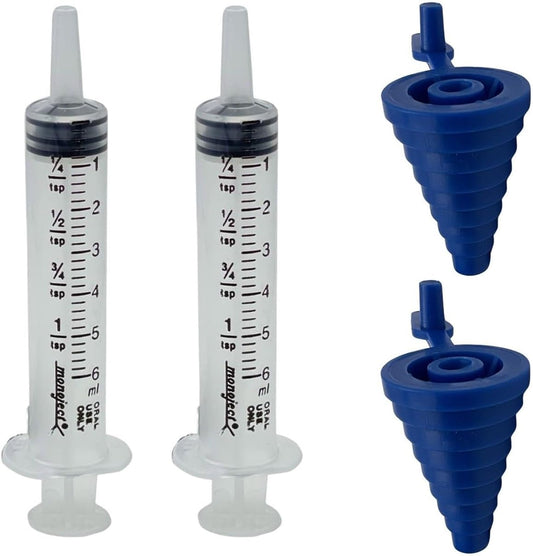 Sandhill Tools Oral Medicine Syringes 6 ml (1 tsp) with Tapered Bottle Adapters - Pack of 5 for Accurate Dosage Administration