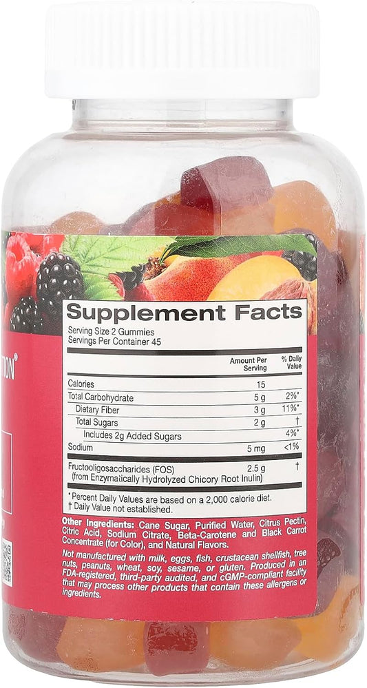 90 Vegetarian Fiber Gummies with Natural BlackBerry, Peach & Raspberry Flavors by California Gold Nutrition
