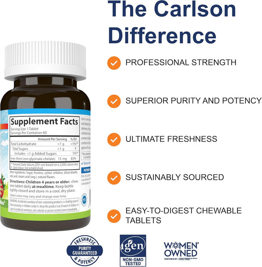 Kid's Chewable Iron Supplement - 15 mg, Natural Strawberry Flavor, 60 Tablets for Superior Absorption, Blood Health, Energy, and Wellness