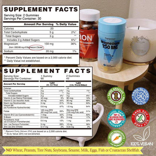 Vegan Iron Gummies with Vitamin C, A, B-Complex, Folate, Zinc for Iron Deficiency & Anemia - Non-GMO Iron Supplement with Magnesium for Adults & Kids for Relaxation Sleep