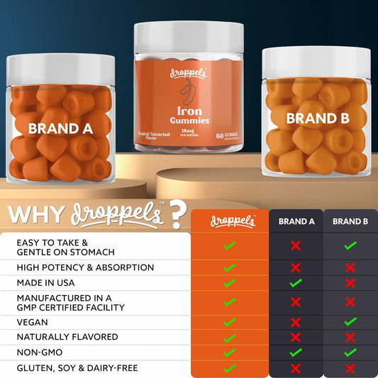 Plant-Based Iron Gummies, 18mg – Vegan Iron Supplement for Women and Men | Pectin-Based Iron Vitamin | 60 Count, Tropical Tamarind Flavor
