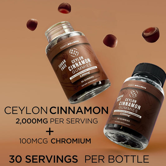 120ct ESSNTLWELLNESS Ceylon Cinnamon Gummies | 2000mg Per Serving | Antioxidant & Joint Support | Apple Pie Flavor | Vegan & Gluten-Free