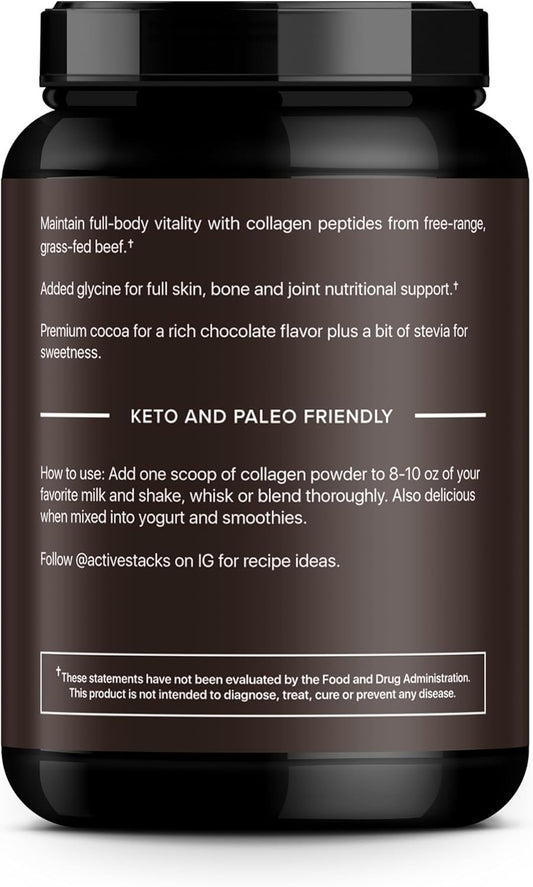 Chocolate Collagen Peptides Protein Powder - Supports Hair, Skin, Bones, & Joints - Easy-to-Mix Hydrolyzed Collagen - Grass-Fed Beef - 2lb