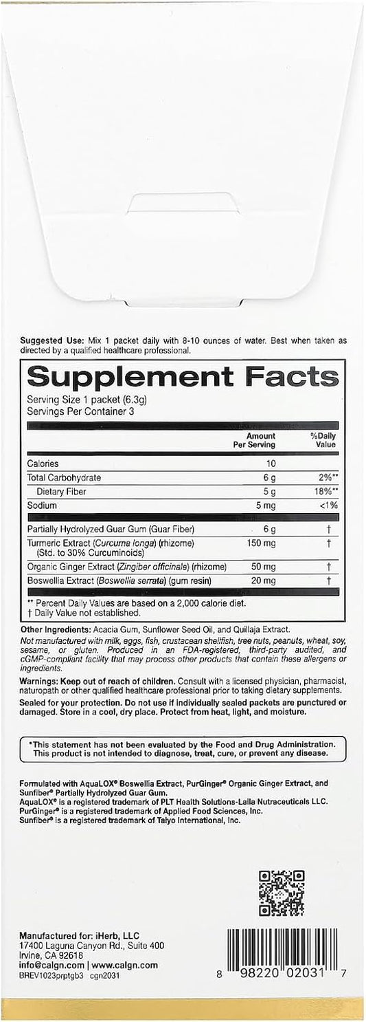 California Gold Nutrition Prebiotic Fiber with Turmeric, Ginger, & Boswellia - 3 Packets, 0.22 oz (6.3 g) Each