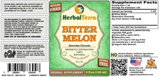 Bitter Melon (Momordica Charantia) Tincture, Organic Dried Fruit Liquid Extract (Brand Name: HerbalTerra, Proudly Made in USA) 4 fl.oz (120 ml)