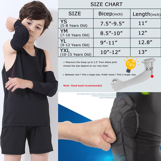 Bohope Kids Youth Padded Arm Knee Sleeve for Compression Leg Protection (Ages 5-15)