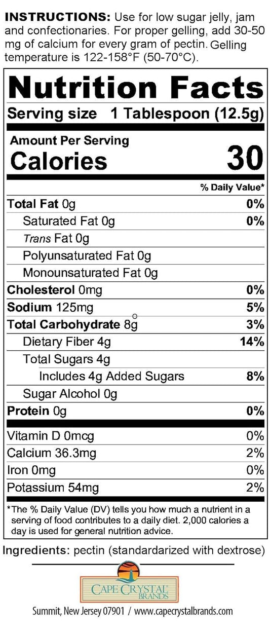 8 Oz Cape Crystal Fruit Pectin - Food Grade & Amidated, Low Methoxyl for Molecular Gastronomy, Vegan Kosher Certified