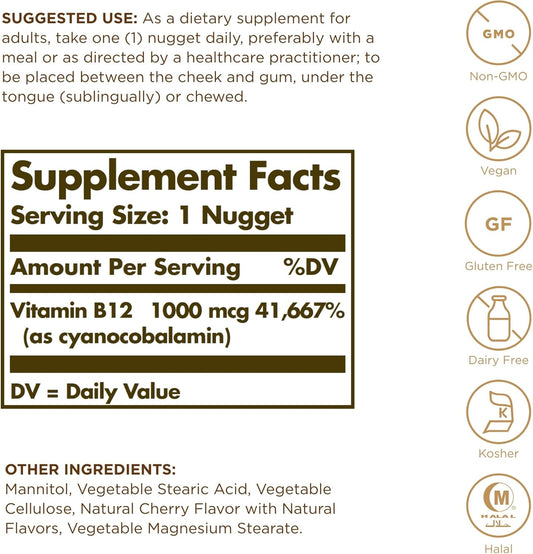 2 Packs of SOLGAR Sublingual Vitamin B12 1000 mcg - 500 Servings - Non-GMO, Vegan, Gluten Free, Dairy Free, Kosher, Halal