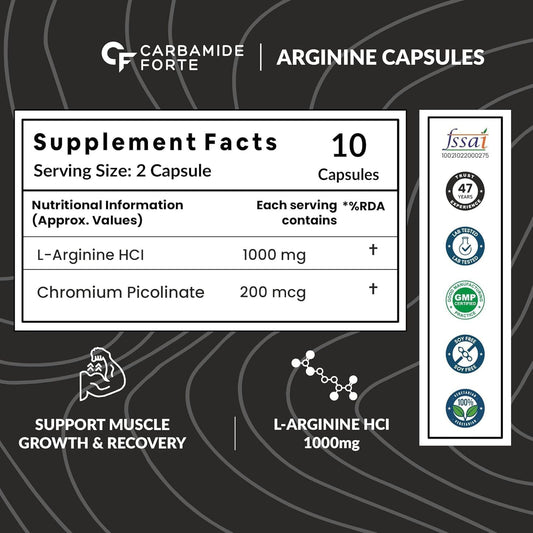 High Potency L-Arginine Supplement 1000mg - 10 Vegan Capsules for Cardiovascular Health and Muscle Support