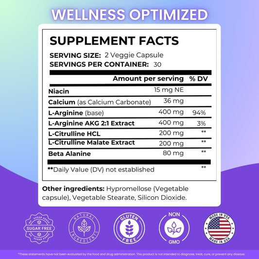 Premium Non-GMO L-Arginine & L-Citrulline Blend - 60 Capsules for Wellness & Fitness Support by Nutra Guru