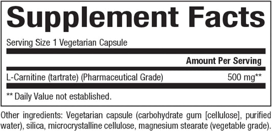Bluebonnet Nutrition L-Carnitine 500mg Capsules - Energy Boosting Fatty Acid Transporter - Vegan, Non-GMO, Gluten-Free - 30 Servings