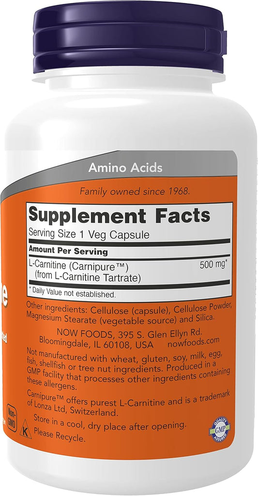 Now Foods L-Carnitine 500 mg Supplement - 180 Capsules for Energy Boost and Weight Management
