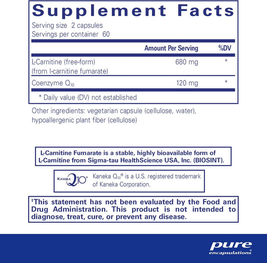 Pure Encapsulations CoQ10 l-Carnitine Fumarate Capsules - Enhanced Cardiovascular Support Formula - 120 Count