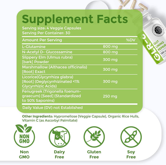 Intestinal Fortitude GLR-6: Gut Health Supplement with L-Glutamine, Slippery Elm, DGL Licorice Root - Repair Leaky Gut, IBS, IBD, GERD - Vegan Formula