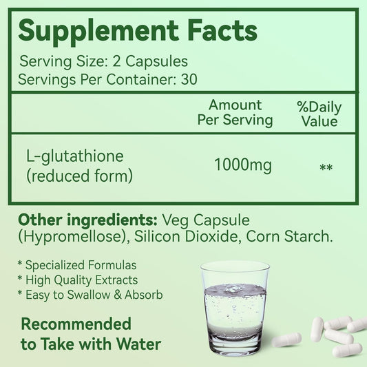 High Potency EAZGOO Glutathione Supplement - 1000mg, 60 Capsules for Immune Support & Skin Health