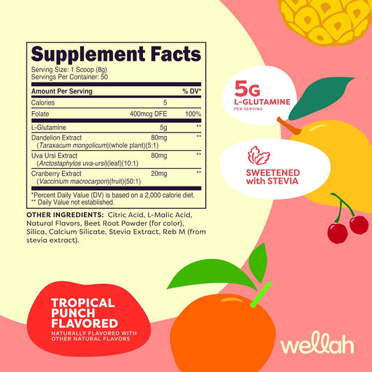 Tropical Punch L-Glutamine Powder - 5g Per Serving, Sweetened with Stevia - 50 Servings