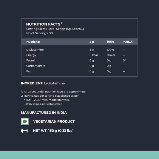 Unflavoured L-Glutamine Powder for Muscle Growth & Recovery - 150g Amino Acid Post Workout Supplement