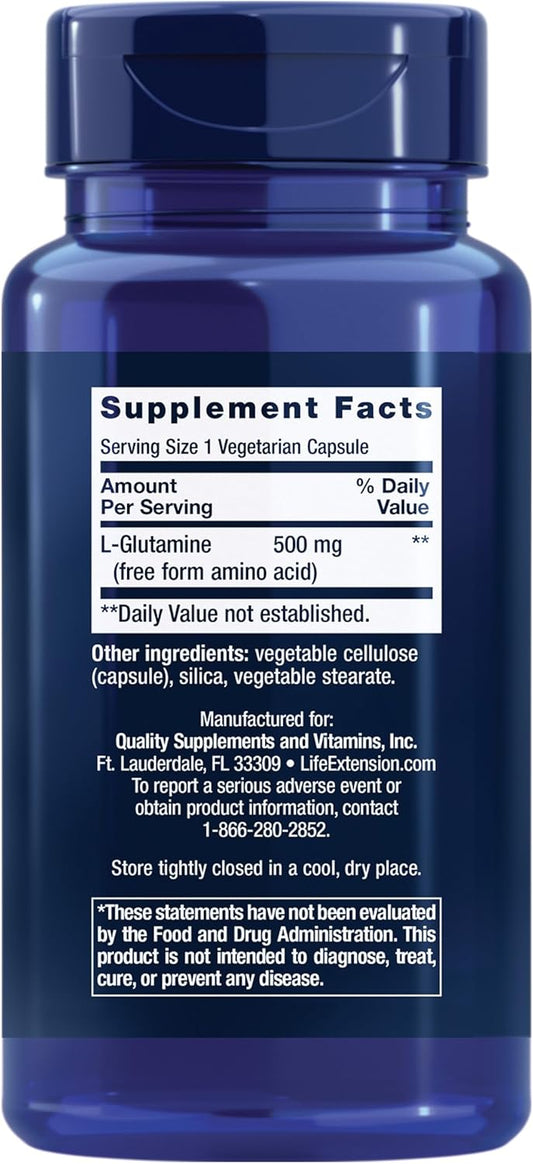 Life Extension L-Glutamine 500mg Capsules - Amino Acid for Muscle and Immune Health, Gluten-Free, Non-GMO (100 Veg Caps)