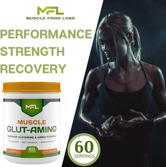 MFL Muscle Glut-Amino: Glutamine & Amino Complex, Sugar-Free, Stevia Sweetened, Natural, 60 Servings Lemonade