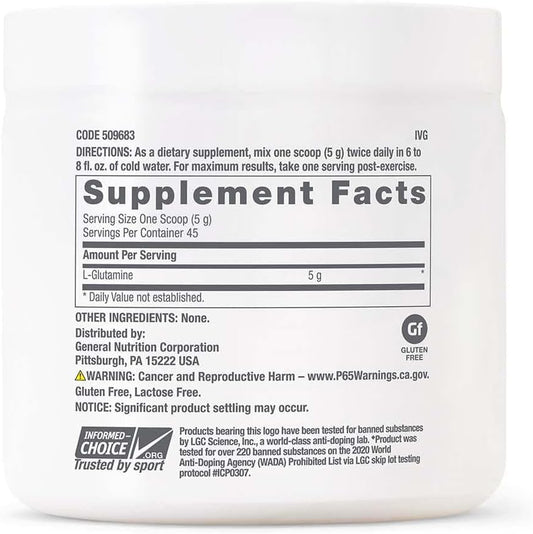 High-Quality GNC Pro Performance L-Glutamine Powder - 5000mg, 45 Servings, Unflavored - Muscle Recovery and Immune Support Supplement