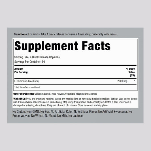 High Strength L-Glutamine Capsules | 2000 mg | 240 Count | Free Form Amino Acid Supplement | Non-GMO & Gluten-Free