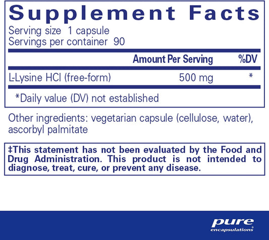 1000mg Free Form L-Lysine Amino Acid Supplement for Energy, Skin & Vegan Support - Gluten Free, Alkaline Balance - 1 Bottle 100 Counts