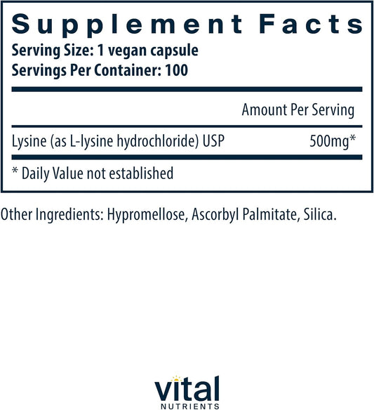 Lysine Supplement for Healthy Lips and Oral Tissue | Supports Immune System and Calcium Absorption | Non-GMO, Gluten, Dairy, Soy Free | 100 Capsules